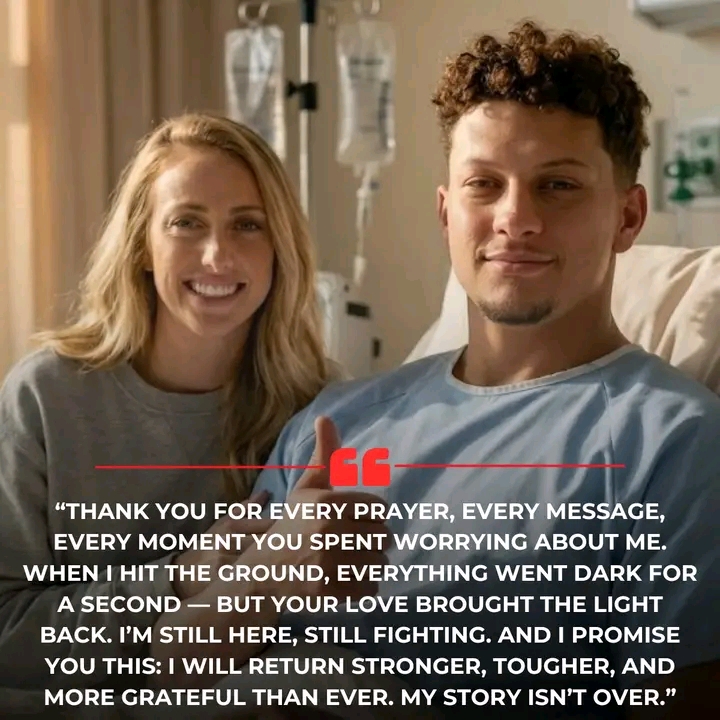 π₯π βIβM NOT DONE.β Patrick Mahomes finally breaks his silence after a terrifying injury β and his emotional message has the entire KC Chiefs fanbase in tears ππ₯ FULL STORY πππ After a recent medical procedure, the Chiefs superstar has finally broken his silence β and the message he shared has touched the hearts of millions of fans around the world. Fans had hoped, prayed, and constantly refreshed their feeds for any sign of reassurance from the face of the franchise, and this morning, that message arrived. Mahomes, always composed yet humble, spoke with the honesty and clarity that has defined his leadership since he first stepped into the spotlight: βThe road to recovery is still long, but I trust in healing β through love, through the game, and through all of your prayers.β This was the update millions had been waiting for β not loud, not flashy, but deeply human, reminding everyone that even a generational talent, a man who has carried Kansas City to unforgettable heights, sometimes has to face challenges that cannot be overcome alone. He acknowledged the reality with trademark humility: βIβm fighting, but I canβt do this alone.β Those words echoed across Chiefs Kingdom, flooding social media, earning tributes from teammates, and rallying the entire football world with messages of strength and belief β because when Patrick speaks from the heart, people listen. Now, more than ever, this is the moment for all of us β fans, teammates, the city, and the global football community β to lift him up with love, faith, and unwavering support.