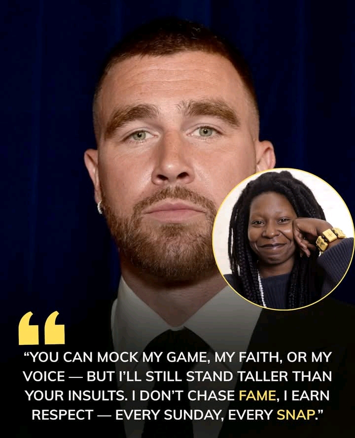 When The View co-host Whoopi Goldberg casually remarked, “He’s just a football player,” the studio audience laughed. Moments later, Travis Kelce looked directly into the camera and delivered a response so unexpected, so raw, that it froze everyone in the room.