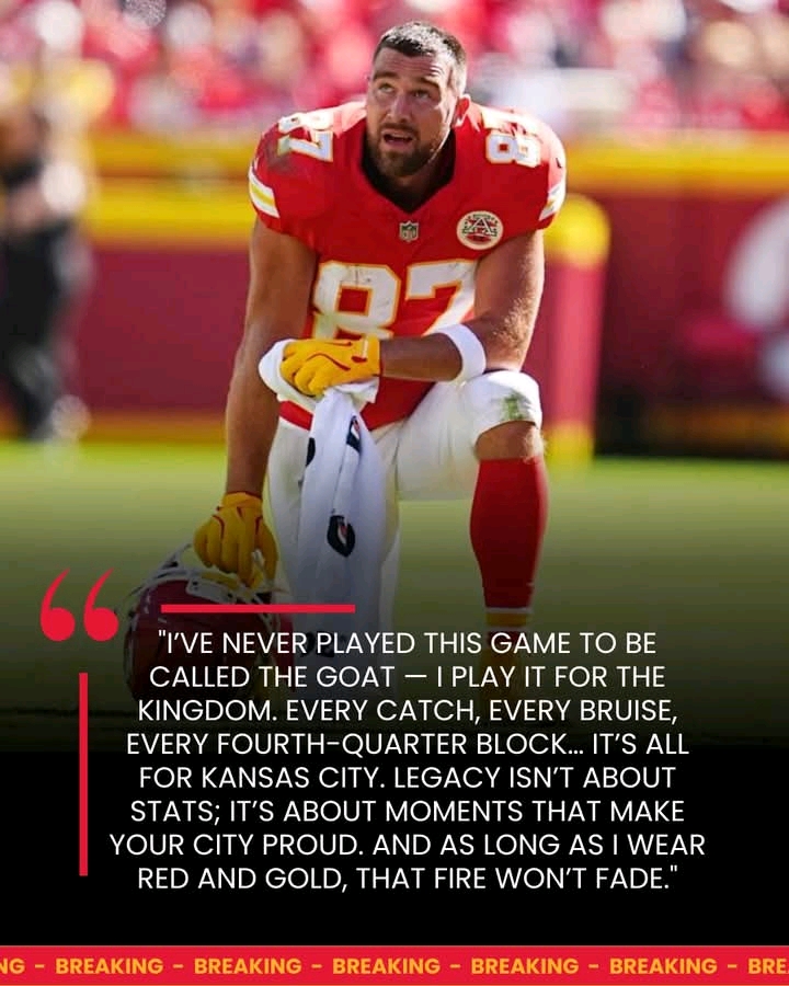 The image was just as powerful as the words — Travis Kelce, helmet off, kneeling on the Arrowhead turf, sweat dripping under the roaring red lights. It wasn’t a victory pose. It was the quiet posture of a warrior who’s given everything, season after season, for the team that defines him. For Chiefs fans, it wasn’t just a picture. It was a statement —
