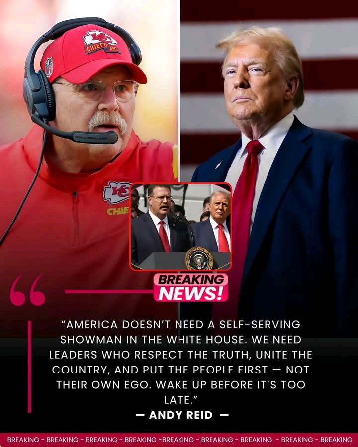 BOOM! Andy Reid Just Set the Internet on Fire and Washington Is Shaking! In a bombshell new TIME Magazine interview, legendary Kansas City Chiefs head coach Andy Reid didn’t hold back, calling Donald Trump “a self-serving showman” and issuing a stark warning to America: “Wake up before it’s too late.” With uncharacteristic fire, the veteran coach went straight for the jugular: “He’s exactly why the 25th Amendment and impeachment exist.” The internet immediately exploded. Fans are cheering, critics are stunned, and Washington is in chaos. Andy Reid made one thing crystal clear: “We don’t need kings. We need leaders who care about the truth and the people they serve.” Love him or hate him, Andy Reid just said what millions have been thinking — and he didn’t blink. 🔥🏈 Read more ⤵️