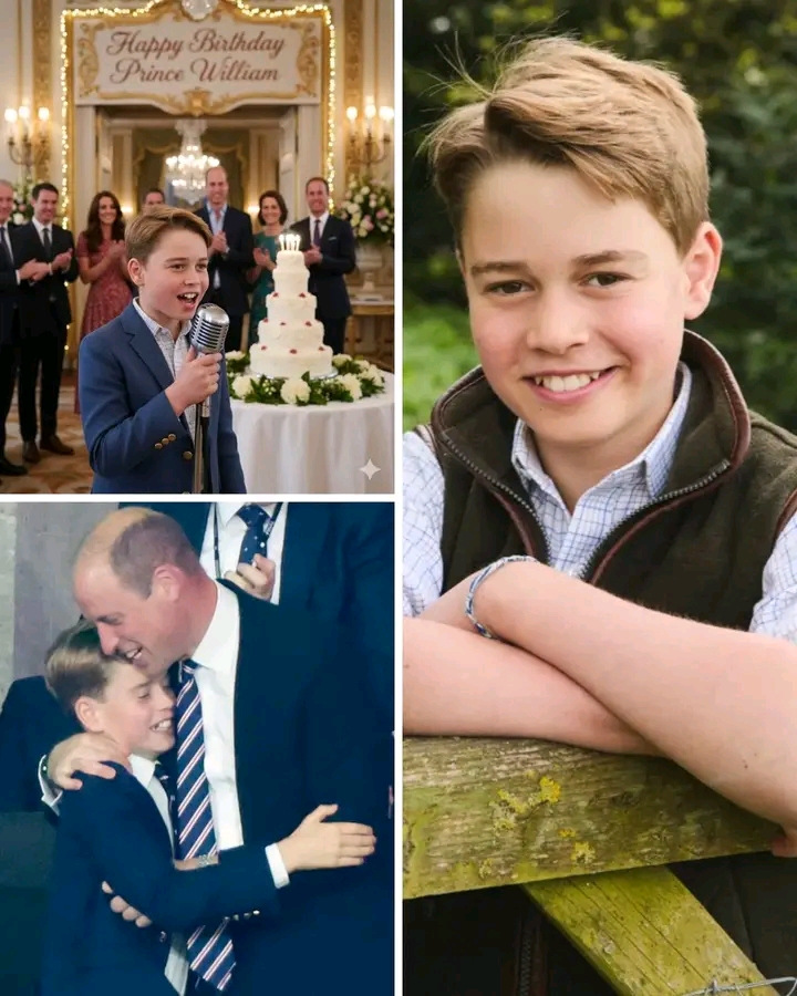 “Dad, This Song Is for You” — Prince George Stops Time at Prince William’s Birthday Banquet It was meant to be a quiet family celebration, surrounded by candlelight and laughter beneath the ancient oaks of Windsor Castle. But as twilight fell, no one expected the evening to end in tears of love. Prince George, with nerves and pride flickering across his face, stepped onto a small stage. He squeezed Princess Catherine’s hand, lifted the microphone, and the first notes of “You Raise Me Up” gently filled the air. His voice, soft and trembling, carried the purest of emotions—so raw, so sincere. Prince William sat motionless, his eyes glistening, as his son’s song echoed through the garden. It wasn’t rehearsed or polished, but it was perfect. By the chorus, even the flickering candles seemed to sway in rhythm with the moment. When George finished, a deep silence fell over the garden before William rose, pulling his son into a tight embrace, whispering words only a father could say. That night, there were no titles, no thrones—only love. And in that one perfect moment, a prince became just a dad, and the royal garden became a heartbeat… WATCH BELOW👇👇