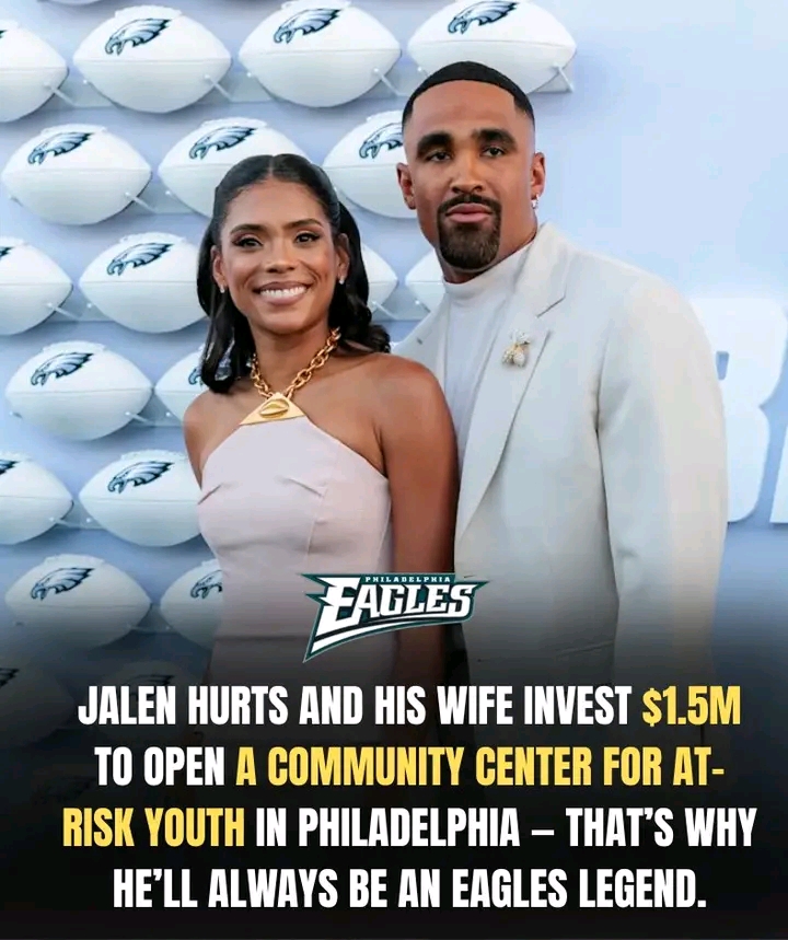 “From the Field to the Future: Jalen Hurts and His Wife Invest $1.5M to Build Hope, Opportunity, and a Home for Philadelphia’s Next Generation 💚 In a city that bleeds green, Jalen Hurts is proving that true leadership extends far beyond the end zone. With his wife by his side, the Eagles’ star quarterback has pledged $1.5 million to create a community center for at-risk youth in Philadelphia — a safe haven where dreams can be rebuilt, skills can grow, and second chances become reality. It’s more than charity; it’s a legacy of love, leadership, and the belief that every child deserves a fighting chance to soar.” Full details:
