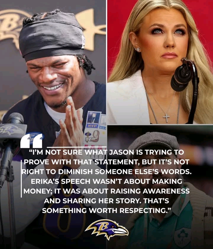 Lamar Jackson Responds to Jason Kelce’s Candid Statement Exposing Erika Kirk’s Speech at Ole Miss as a Calculated Fundraising Stunt