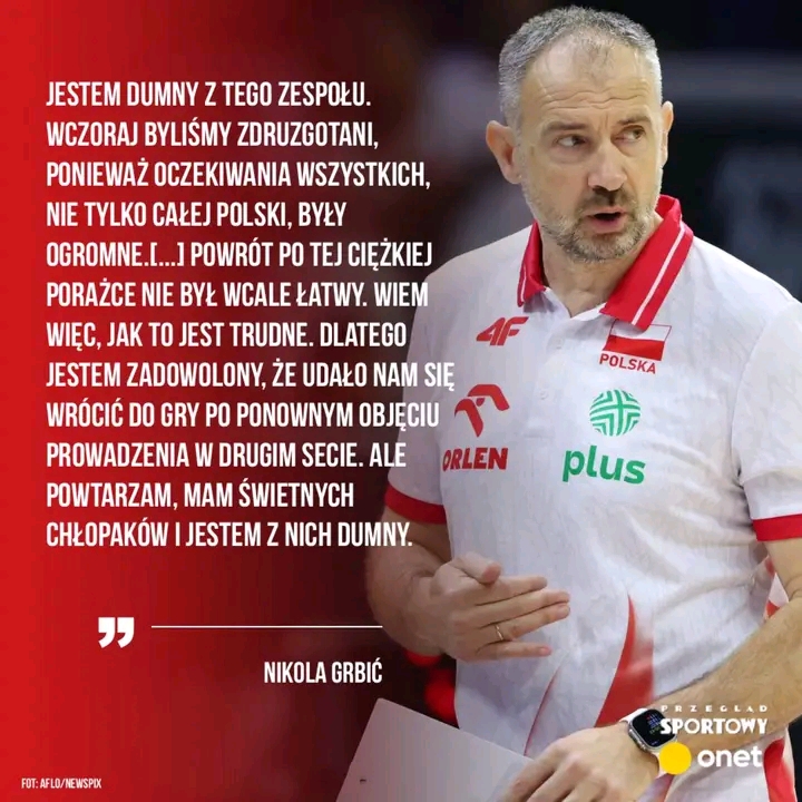 Trener reprezentacji Polski był też pytany przez dziennikarza Polsatu Sport, co czuje. Zanim odpowiedział, przez kilka sekund milczał. — Byliśmy i jeszcze jesteśmy rozczarowani, bo przegraliśmy wczoraj. Ale z tego miejsca teraz… Oczywiście, że ten brąz nie ma tej wagi, jaką miałoby złoto. Jeśli jednak wrócimy się na początek sezonu, gdzie mamy siedmiu zawodników, którzy nie są z nami od przyszłego sezonu, a z chłopakami, którzy dużo nie grali o mistrzostwo świata, albo pierwszy raz w reprezentacji… i myślę, że wygrać dwa medale w tym samym sezonie — stwierdził.