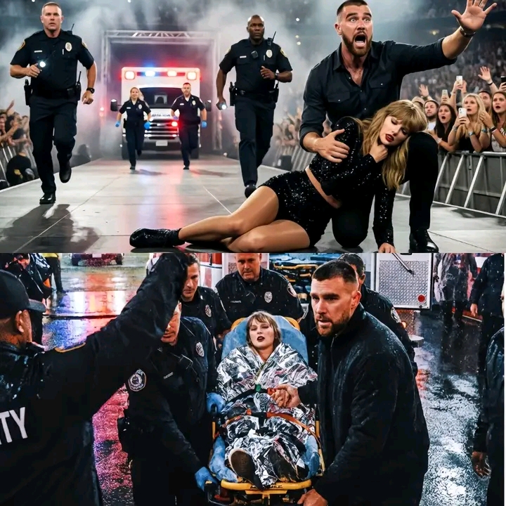 Panic on stage! Travis Kelce rushes to save Taylor Swift after a sudden medical emergency — the pop superstar stumbles and collapses in front of tens of thousands of fans, and Travis frantically calls for an ambulance as screams ripple through the crowd, leaving the entire stadium frozen and fans in tears.
